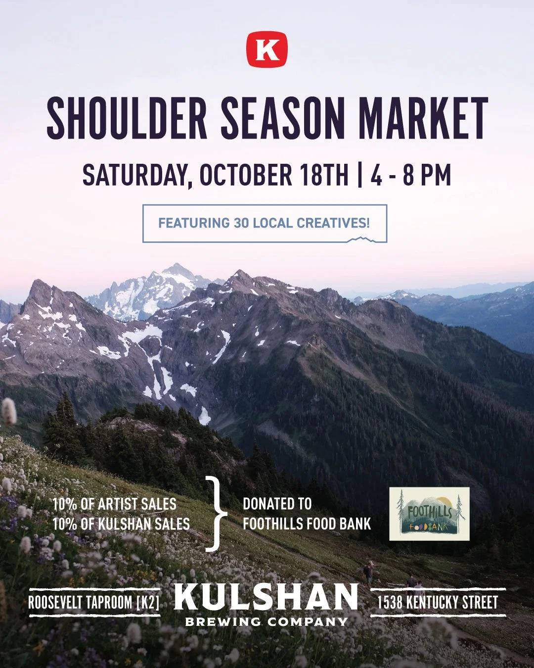 Shoulder Season Market Saturday, October 18, 2025 4:00 PM 8:00 PM 1538 Kentucky Street Bellingham, WA, 98229 United States (map) Google Calendar ICS